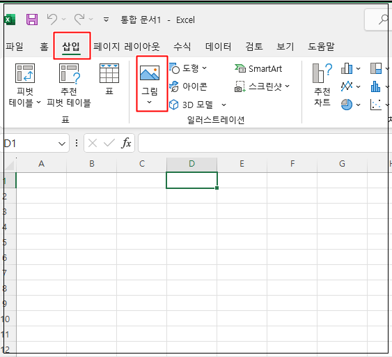 - '삽입' 탭을 클릭한 후 '그림' 옵션을 선택합니다.