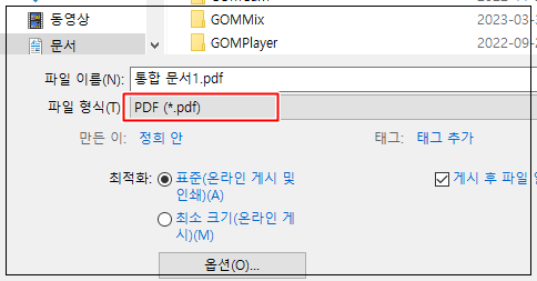 - '저장' 버튼을 클릭하여 문서를 PDF 형식으로 저장합니다.