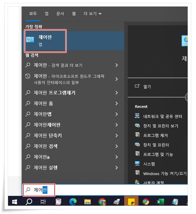 - 시작 메뉴에서 "제어판"을 검색하거나 "제어판"을 직접 실행합니다.
