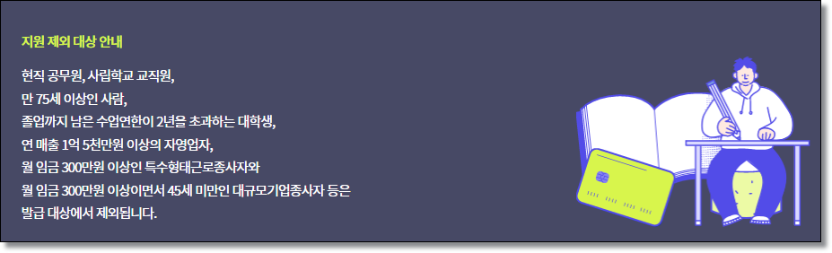 - 내일배움카드의 지원 대상은 광범위하지만 일부 제외 대상이 있습니다. 현직 공무원, 사립학교 교직원, 만 75세 이상인 사람, 일정 수익을 초과하는 자영업자 및 특수형태근로종사자, 대기업 종사자 등이 이에 해당됩니다.
