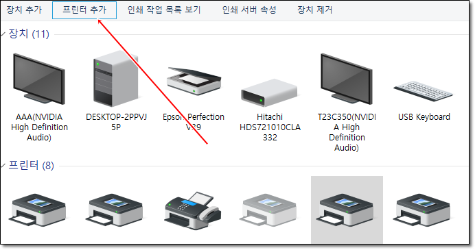 - 프린터 추가를 선택합니다.